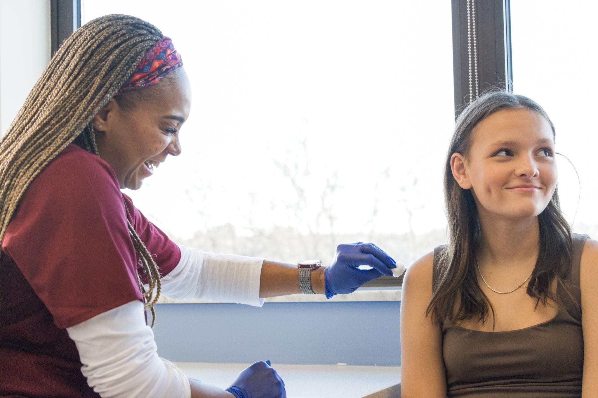 We recognize that receiving immunizations can be painful so we follow four steps to lessen the pain with any needle procedures such as immunizations or lab draws. These four steps include: